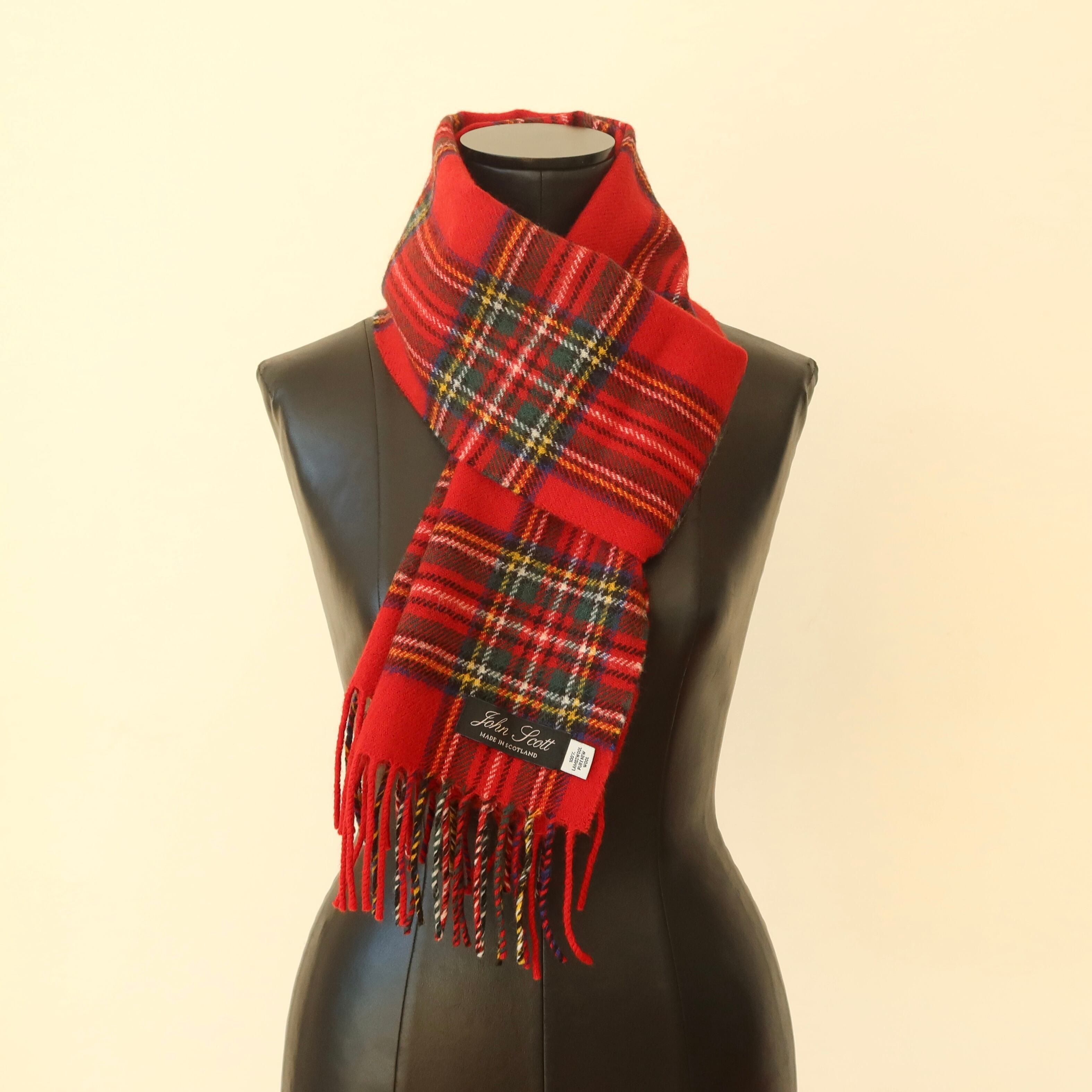 John Scott | ジョンスコット タータンチェックマフラー | ラムウールスカーフ | RED