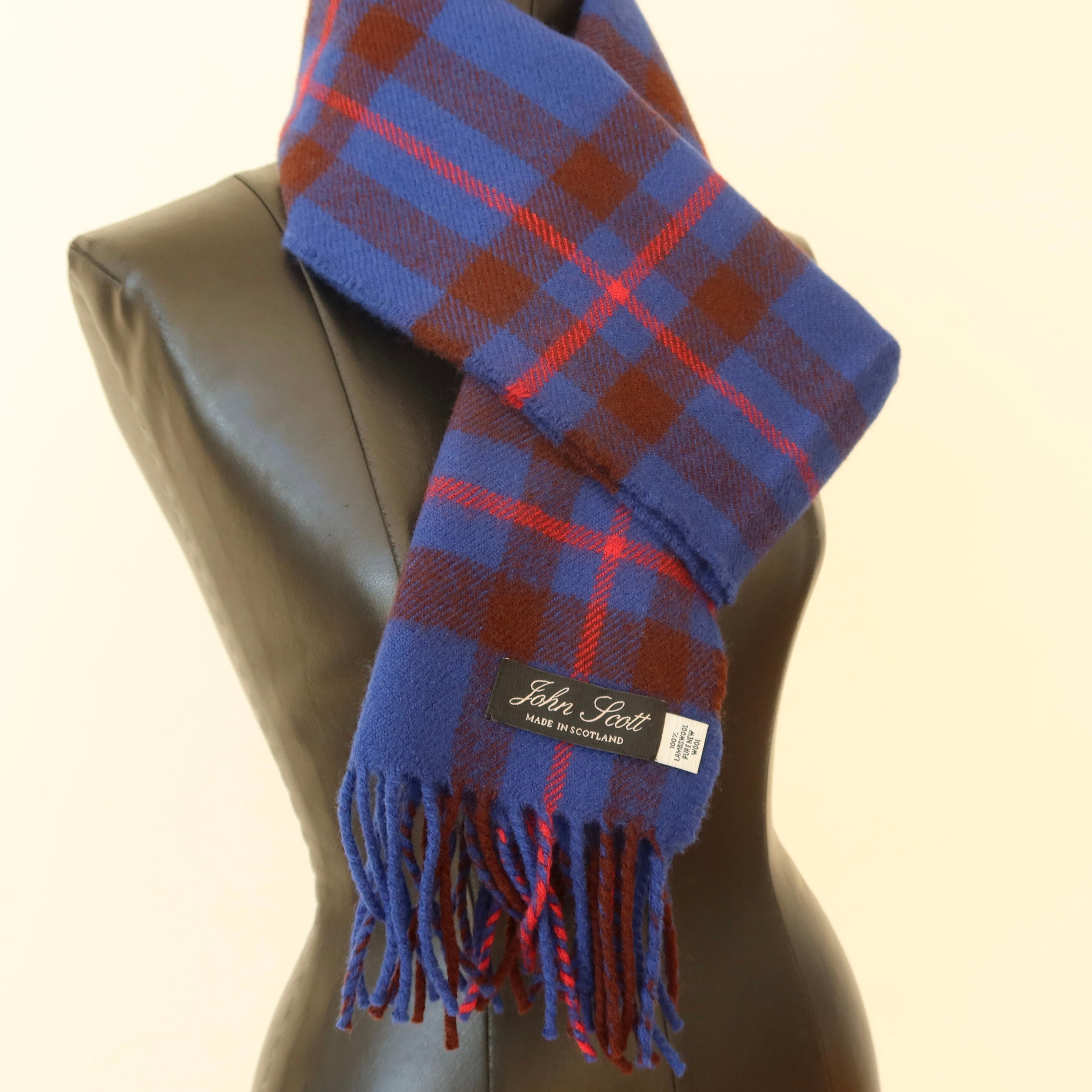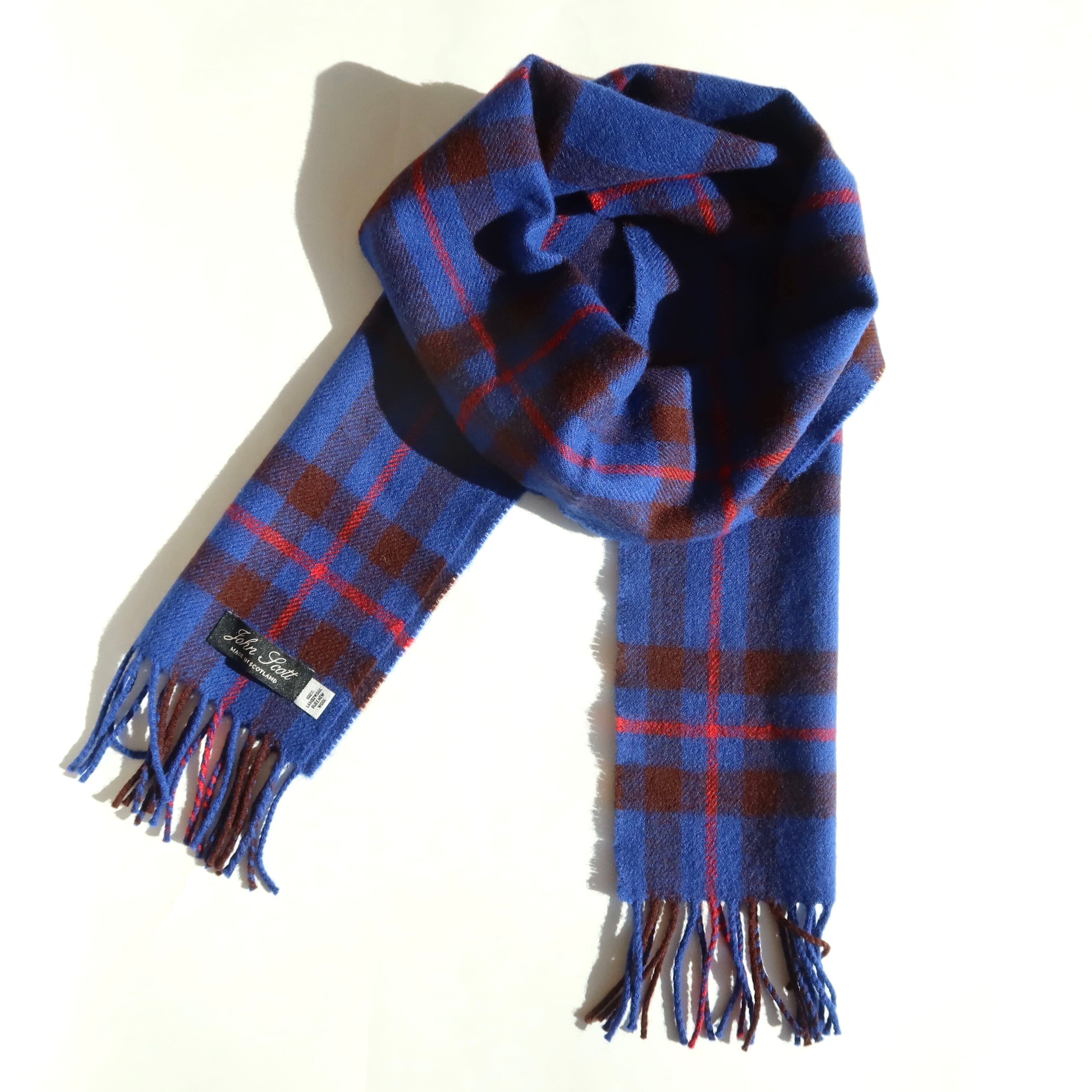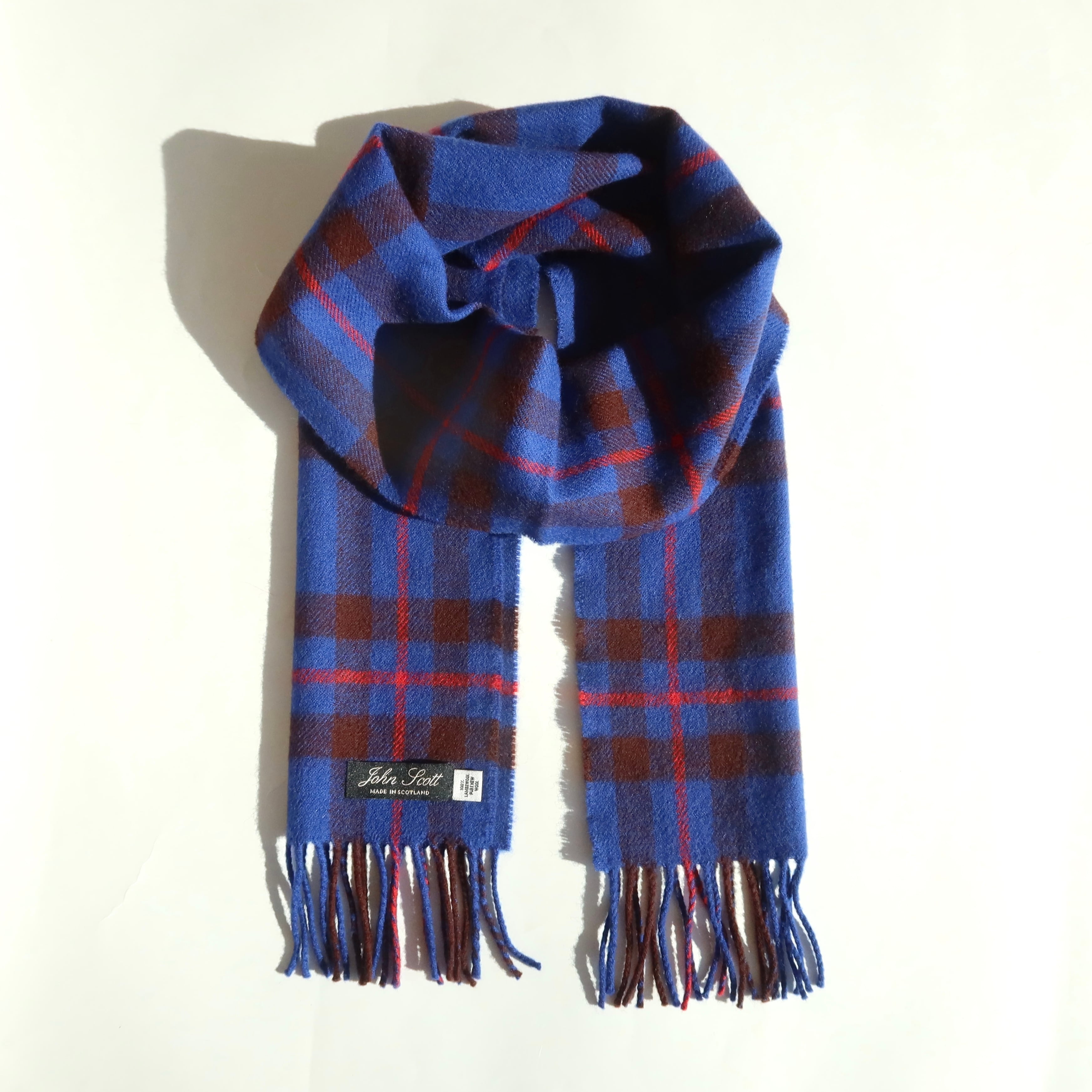 John Scott | ジョンスコット タータンチェックマフラー | ラムウールスカーフ | BLUE